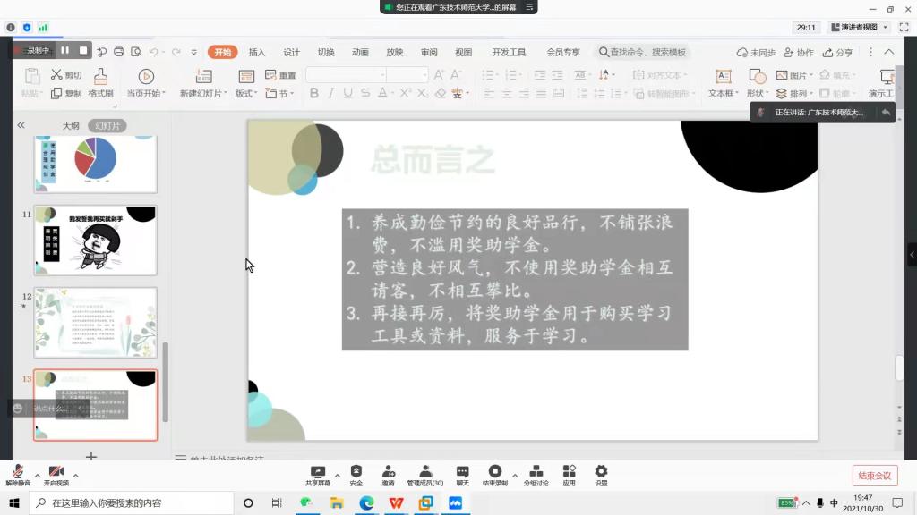 为增强老员工的诚信意识,推动国家助学贷款和国家助学金评审持续健康发展,进一步强化资助育人效果,11月18日,BWIN必赢开展以“诚信感恩”为主题的线上教育活动。公司政工干部、被资助员工共三十余人参加了此次活动。