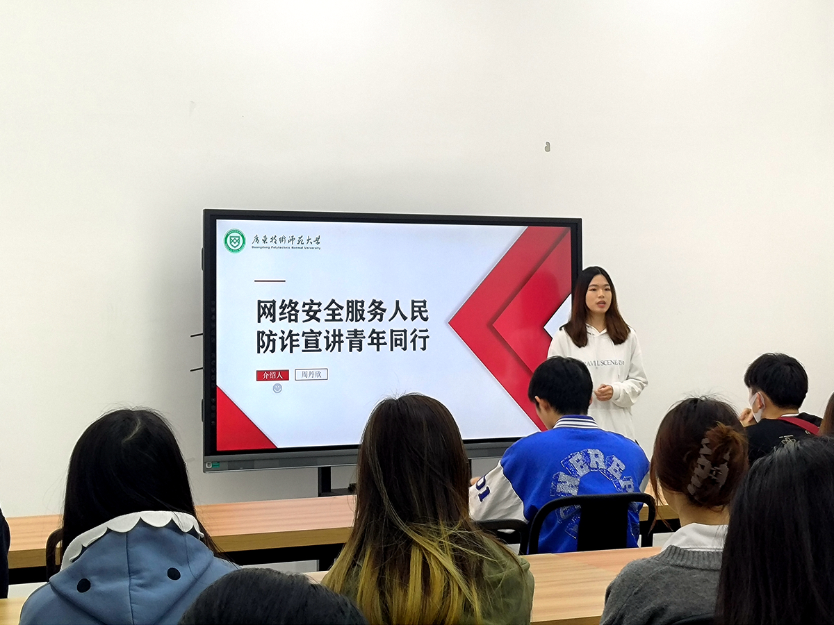 宣讲团成员通过详实的案例讲解和精彩有趣的视频,向在场的同学介绍了冒充公检法诈骗、刷单兼职诈骗、网络贷款诈骗等6种常见的电信网路诈骗类型,揭批了诈骗类型、犯罪手法、诈骗形式,同时针对这几种诈骗手法做了防诈骗技巧的复盘总结,令在场的同学学到不少防诈骗安全知识。活动过程包含提问环节等互动,调动了大家的听讲积极性,活动结束后同学们都表示受益匪浅,对防诈骗有了更深层次的理解,在未来的电信网络活动中会提高警惕心,擦亮双眼,不让诈骗分子有机可乘。