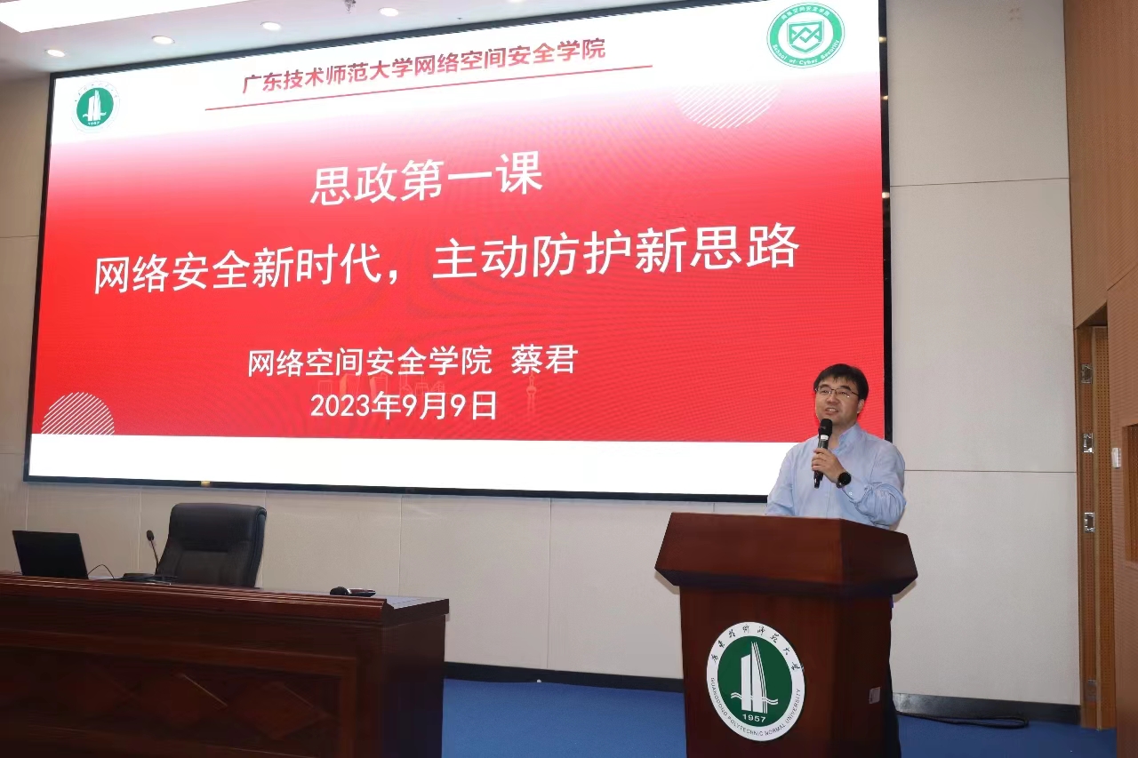 蔡君首先代表公司对全体新生表示热烈欢迎,并以《网络安全新时代,主动防护新思路》为主题向新生们讲授了“思政第一课”。他从新时代对网络安全人才的需求入手,向新生介绍了西校区和网络空间安全公司的发展现状和未来规划,并对新生提出了三点期望:一是要认识到培养工程意识比单纯在考试中获得高分成绩更重要。培养工程意识的关键是动手,在大学的学习中,同学们应该积极参与科创项目,多多动手实践;二是要养成批判性思维,在知识和科研的领域没有绝对权威,要在不断变化的环境和形势中时刻保持清醒的头脑;三是要运用好数学工具,数学是用来描述自然世界和科学规律的重要学科。作为工科生,要结合专业知识努力学习数学,做一名优秀的网安人才。