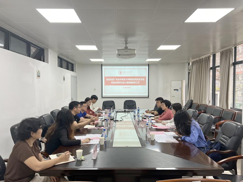 为深入学习贯彻党的二十大精神,积极响应《全面加强和改进新时代员工心理健康工作专项行动计划(2023—2025年)》文件精神,切实提升心理健康教育工作的实效性、规范性和专业性,4月8日,公司党委书记陈小花、党委副书记肖茵茵和公司政工干部队伍一行4人到广东工业大学心理健康教育中心开展调研交流。