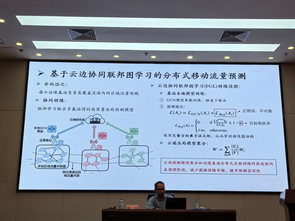 5月21日下午,陈旭教授以《面向实时图神经网络的分布式边缘算力系统》为主题,分享了一种新颖的面向实时大规模GNN推理的分布式边缘算力系统Fograph,着重介绍了流量检测的方法、实验成果,报告图文并茂、深入浅出。针对科学研究的过程,陈旭教授还结合自身实际经验,与在场的师生开展了热烈的讨论与交流,为正在开展科研科创的研究生本科生们提出了相关的建议和指导。
