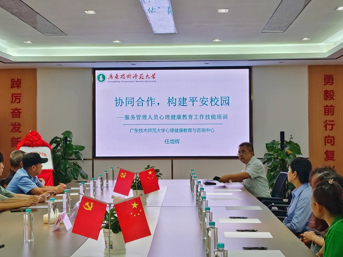 挂牌仪式结束后,任增辉面向相关职能部门师生了开展“协同合作,构建平安校园——服务管理人员心理健康教育工作技能”的专题培训会。他强调了校内服务管理人员在员工心理健康教育工作中的重要地位,并从如何识别心理问题、如何进行有效沟通等方面进行心理知识科普和心理工作技巧培训。参训人员纷纷表示,作为“心理健康守门人”,会把学到的新理论、新知识、新智慧运用于工作实践中,共筑员工心理健康“防护墙”。