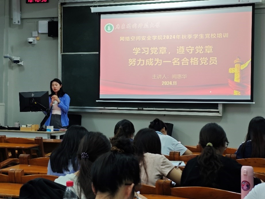11月13日晚上,网安卫士科普党支部书记阙惠华在西校区教学楼405开展了《学习党章,遵守党章,努力成为一名合格党员》的专题党课。她强调,要成为一名合格的党员,必须严格遵守党的纪律和规章制度,并深入阐释了党的纪律的重要性。在这次专题党课中,她为在场的入党积极分子和发展对象详细解读了党章中关于党的纪律的关键条款,这有助于提高他们的党性修养和对党的纪律的认识。