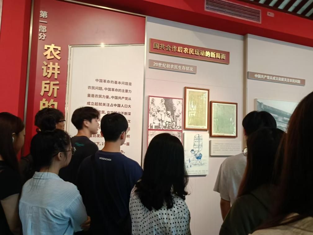 农讲所,是毛泽东同志主办的农民运动讲习所旧址纪念馆,简称农讲所纪念馆。农讲所原为番禺学宫(孔庙),始建于明洪武三年(公元1370年),是明清时期培养儒生、祭祀孔子的所在地。而1924年,于红墙黄瓦间,农民运动的星星之火在此燃起。1924年7月3日,第一届农民运动讲习所在广州创办,到1926年9月,在广州共举办了六届农民运动讲习所,培养了一大批农民运动干部,他们奔赴全国各地发展农民运动,发展党团组织、举行武装斗争、播撒革命火种,为中国革命作出了重要贡献。学员们通过参观历史文物,参观历史展览的方式,了解了农讲所纪念馆的基本陈列和珍贵文物背后的故事,深刻感受红色文化的独特魅力和深厚底蕴。